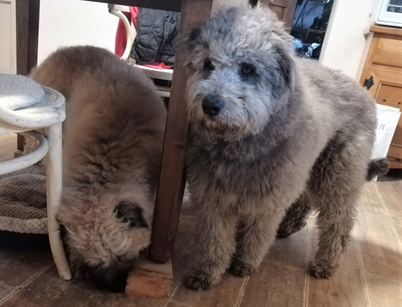 Wir haben ein wenig recherchiert, was es für Rassen sein könnten... Also wir denken es sind Bergamasker Hütehunde, also Alfi sieht total so aus. Und bei Adri könnte noch ein Briard dabei sein. Wir denken, wir bekommen Hunde mit Dreadlocks.