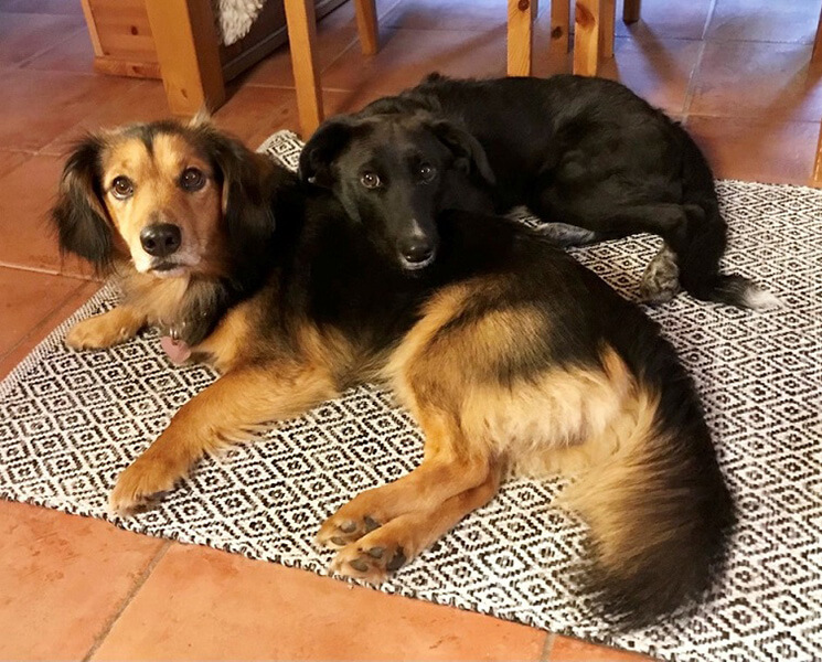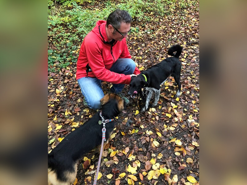 Er ist sehr interessiert an allen, interessiert und lernt sehr schnell. Er sitzt, macht Platz, ist frei laufend abrufbar, wenn er mal weiter weg wäre. Ihn rufen üben ist fast schwierig, weil er nie weiter als 5-10 Meter von uns entfernt ist, ganz zum Gegenteil des sehr selbständigen und selbstbewussten Leo.