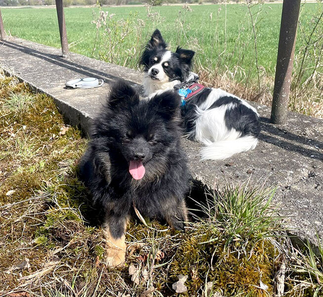 Er liebt die langen Spaziergänge mit unseren anderen beiden Hunden und geht mittlerweile fast schon perfekt an der Leine.