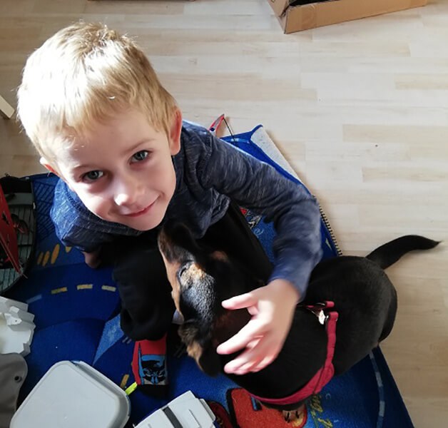 Sie bleibt Vormittags schon brav allein, ist komplett stubenrein, verträgt sich bestens mit unseren Katzen und für unseren Sohn ist sie eine richtige Freundin.