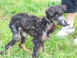 Bailey wurde im Oktober 07 im Tierheim Bratislava, mehr tod als lebendig, an Mitarbeiter von ACA, in der Hoffnung auf Rettung, übergeben. Er wog anstatt von ca 15kg nur mehr noch 7kg und hatte schwerste Hautprobleme, wir vermuteten Verätzungen.