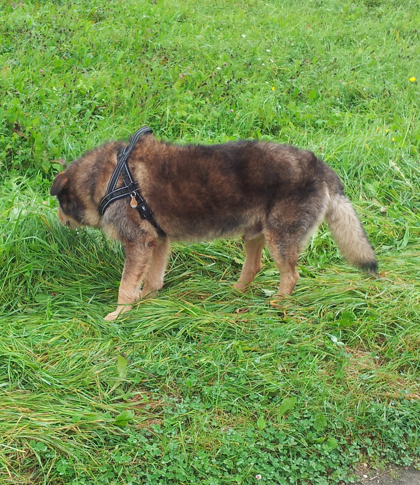 Vor drei Tagen hab ich angefangen, mit Balou kurze Strecken, weit ab von Strassen ohne Leine zu laufen, es funktioniert ganz gut.