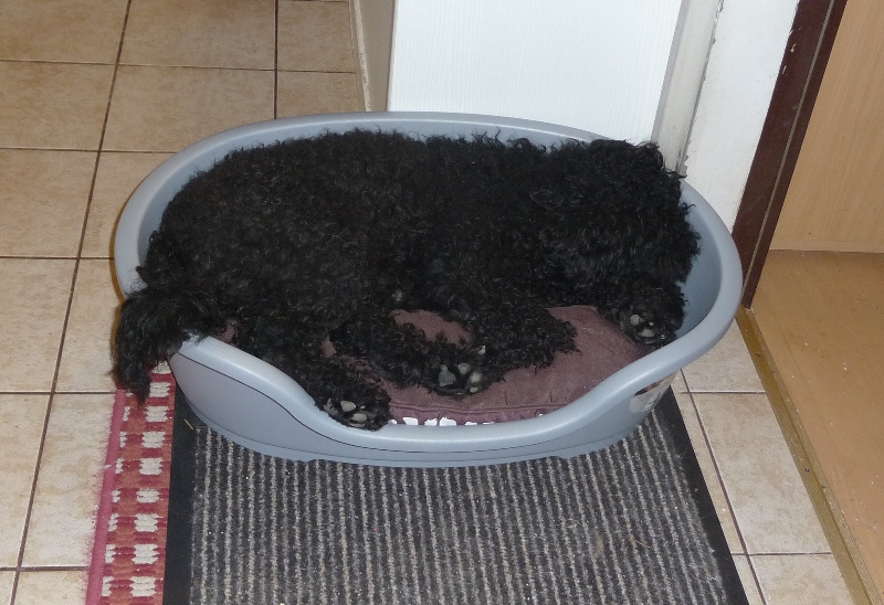 Letzte Neuigkeiten: er gibt unaufgefordert Pfote, er gibt Bäuchlein zum Kraulen und er benützt sein schönes neues Hundebett. Und er versteht „geh auf deinen Platz“ so wie er auch das Handzeichen für „Platz“ versteht. Dieser Hund überrascht mich stündlich mit neuen Dingen. Ich lerne es ihm nicht – er macht es einfach von selbst!!!