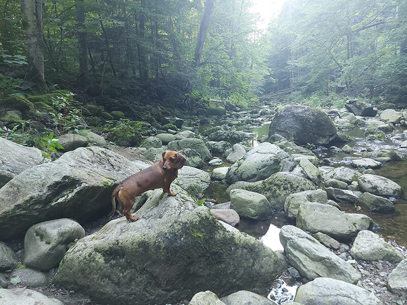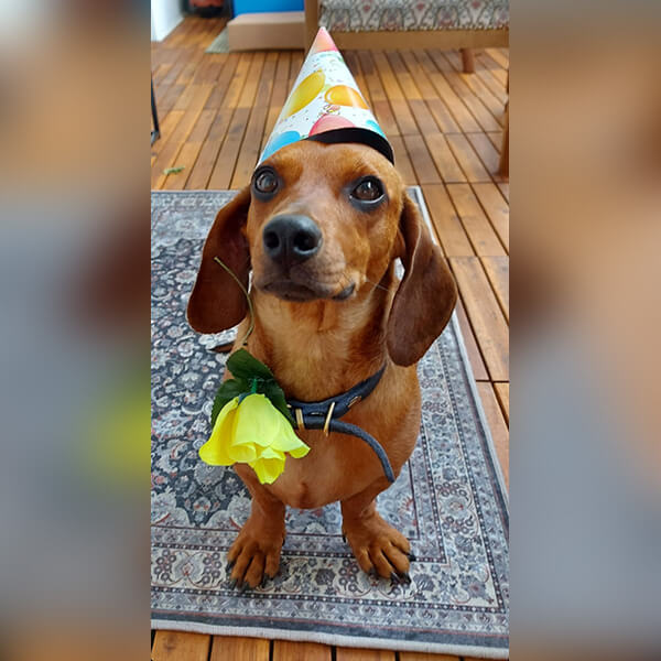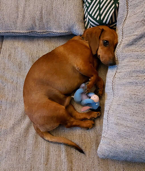 Er ist lernfreudig, zu fremden Hunden und Menschen gleichermaßen freundlich, er baut sich gerne Höhlen und zupft dafür auch mal sämtliche Decken, Kissen, Kleidungsstücke etc. in der Wohnung herunter. Auch seine gelegentlichen Dackel-Allüren sind wirklich lustig. Kurz, er ist ein absolut entzückender, lebensfroher und liebenswerter Zeitgenosse und wir möchten nicht mehr ohne ihm. Er bringt alle regelmäßig zum Lachen und sämtliche Herzen zum schmelzen.