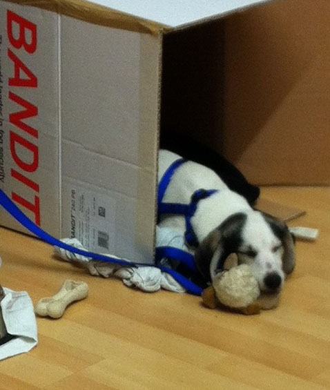 das erste Foto habe ich gemacht am Abend, an dem ich ihn bekommen habe. Man sieht wie ängstlich und klein er war.