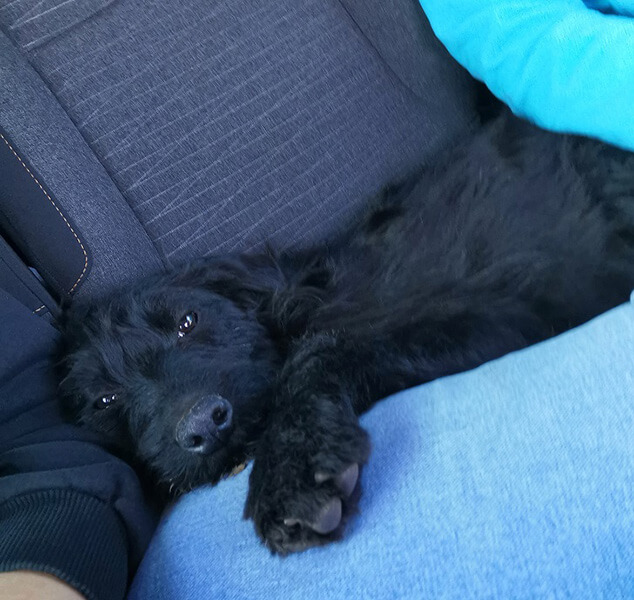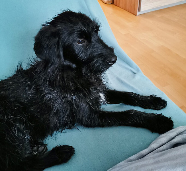Er und die Tweety vertragen sich auch wunderbar. Nur sind die beiden noch sehr zurückhaltend. Am Abend hat er noch im Vorzimmer geschlafen, hat sich am Abend aber auf meinem Bett rauf geschlichen. Er hat bis jetzt einmal reingemacht und das war wo ich geschlafen habe, ansonsten geht er brav draußen sein Geschäft verrichten. Man kann nach einem Tag noch nicht viel sagen, aber das was ich sagen kann, er ist ein sehr schlauer Hund. Er hatte Hunger und ich habe das Futter noch oben stehen gehabt. Dieser Frechdachs ist mir auf die Küche gesprungen. Hahaha, ich fand das amüsant.