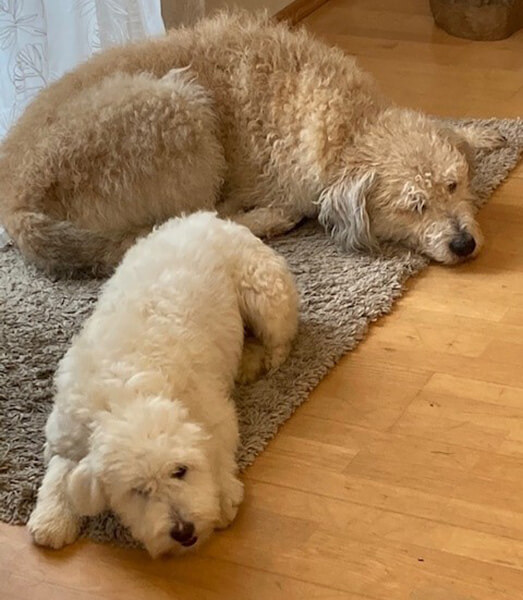 Benito ist gut dabei, sich bei uns einzuleben. Er orientiert sich sehr an Dusty, lernt schnell. Macht seine Geschäfte nun nur mehr draussen und spielt schon mit ihm.