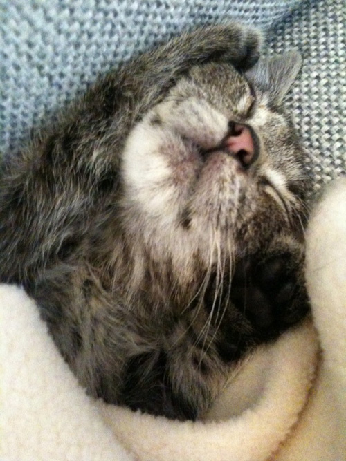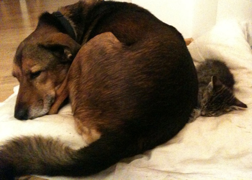 Letzte Nacht hat er im T-Shirt an meinen Rücken gekuschelt geschlafen.
