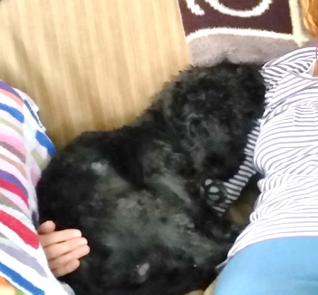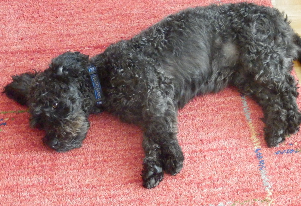 Papier schreddert er auch gerne. Wenn er die Chance hat, dann macht er aus einer Zeitung ganz kleine Schnipselchen, die er dann stolz einem zeigt. Tja, was soll man dazu noch sagen. Hast Du fein gemacht, und dann dürfen wir den Staubsauger erst einmal anwerfen. Und ein Höhlenhund ist er auch. Er geht zum Schlafen immer unter unser Bett und tagsüber schläft er versteckt unter den verschiedenen Tischen.