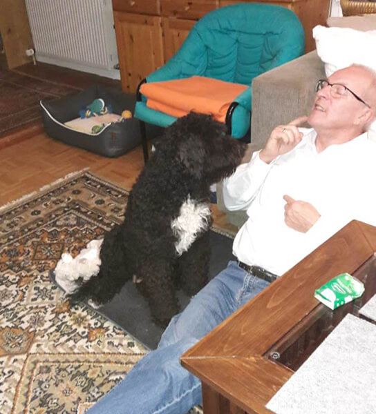 Benny macht täglich Fortschritte, entwickelt sich zu einem wahren Schmuser, im Haus keinerlei Unarten, steigt mit Vergnügen ins Auto ein, weckt uns wenn er raus muss und klebt beim Fernsehen immer zwischen meiner Frau und mir.