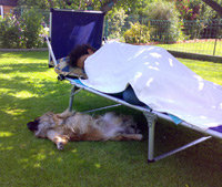 - wenn die Eltern nicht da sind, fährt manchmal mit mir im Büro und manchmal bleibt daheim - wird aber immer wieder zu Mittag Gassi geführt. Er ist oft im Sommer im Garten auf der Schmelz mit mir oder mit meinem Freund - da wird von seinen Eltern wieder verwöhnt !!