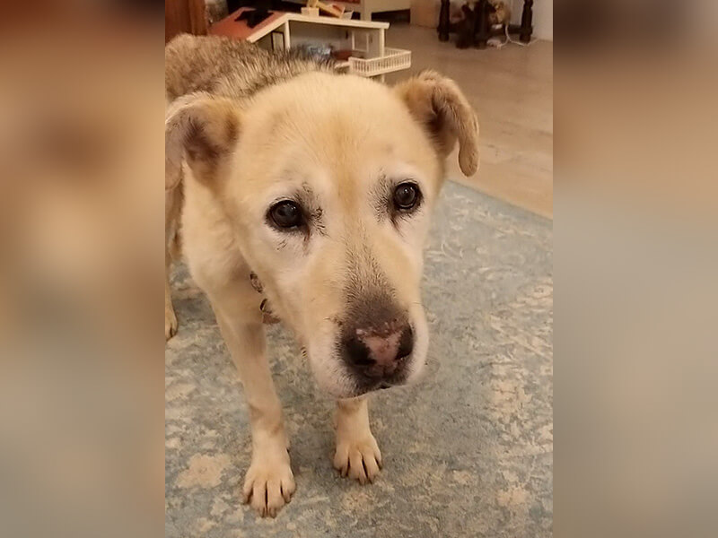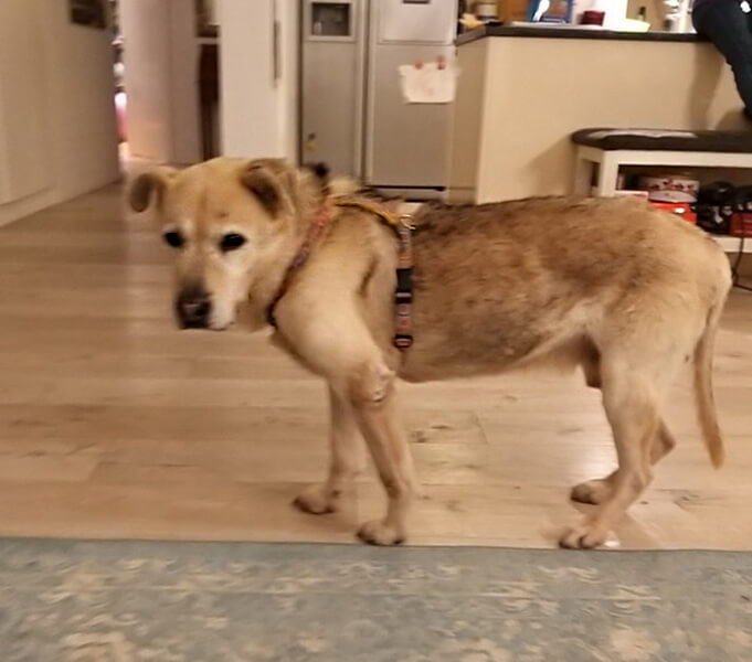 Er ist eigentlich ein ganz Neugieriger und steht gerne bei den Mädels und schaut, was sie so treiben. Auch das Streicheln fängt er an zu genießen und ich finde er schaut schon ein bisschen besser aus! Er schafft sogar schon zwei kleine Gassirunden.