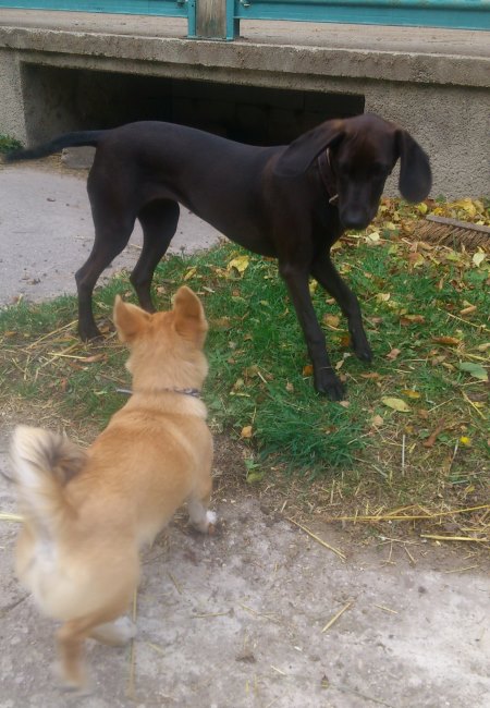 Er hat auch schon einige Freunde "gefunden" mit denen er regelmäßig spielt und herumtobt. Vor einiger Zeit haben wir eine kennen gelernt, die auch einen Welpen hat und der fast so aussieht wie Chester nur größer, dann haben wir uns mit ihr getroffen und die Ähnlichkeit ist verblüffend (erstes Bild) :) Nebenbei ist er ein kleiner Lauser :) aber wir haben ihn alle lieb und wenn wir wo sind ist er der "Hit", weil er einfach so süß ist.