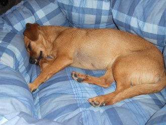 Sie ist einfach ein Traum, bellt nur dann, wenn sie uns in Gefahr sieht, ist wahnsinnig lieb und freundlich, womit sie sich schon ihren Schlafplatz erobert hat ... ja ich weiß, das ist vielleicht nicht das Beste, aber Churchilla schläft bei uns 3 im Bett.