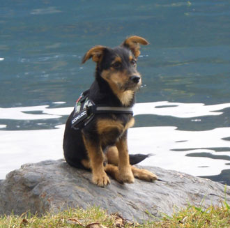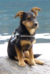 Er ist ein Kletterer und 'Schwimmer' und ist auch schon in den See gesprungen (unabsichtlich, aber eine Ente hat ihn so geschreckt, da ist er reingeplumpst!)