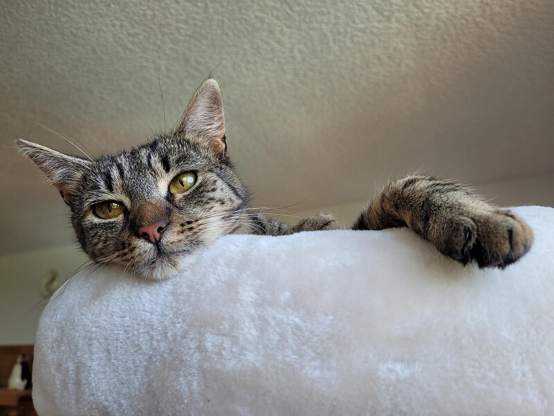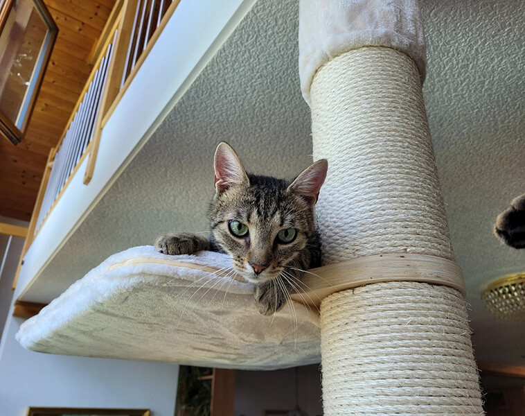 Mittlerweile ist ihnen schon vieles vertraut und sie genießen sehr ihren Kratzbaum.
