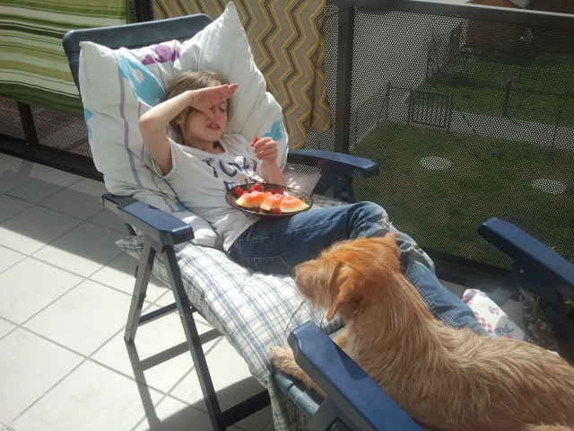 Gerne schicken wir ein paar Bilder von Dio. Ich glaube er fühlt sich ganz wohl bei uns :). Dio wird immer zutraulicher, hört auf seinen Namen und folgt. Mit Noemi spielt er sehr viel und mit anderen Hunden versteht er sich prima. Wir sind echt happy mit Dio.