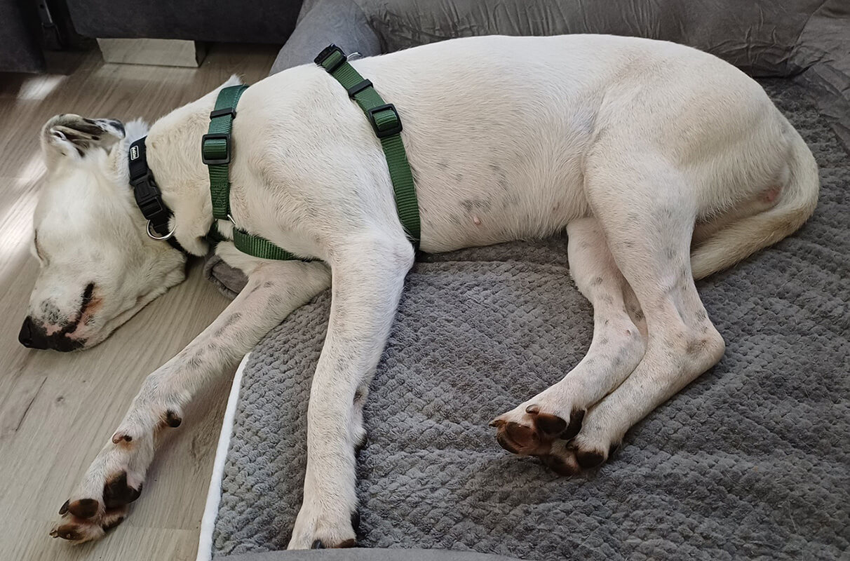 Domino ist ein toller Hund, Sie war ganz schnell stubenrein, liebt ausgedehnte Spaziergänge und geht dabei wunderbar an der Leine. Domino ist ein totaler Menschenfreund, liebt Streicheleinheiten und will immer bei uns sein. Vom Ball werfen im Garten kann Sie nicht genug bekommen und beim Futter ist Sie auch nicht wählerisch, rundum…ein perfekter Hund 😊