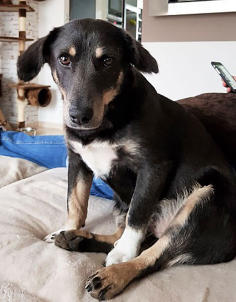 Er hat sich von Anfang an super in unser Familienleben bzw. Alltag eingefügt - mit den beiden Katzen war es ein langsames Herantasten, aber mittlerweile ist gemeinsames kuscheln auf der Couch möglich. :-)