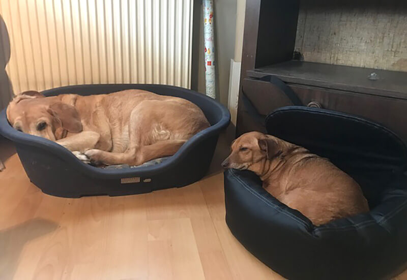 Mit Winston kommt sie gut zurecht. Sie sind noch nicht so weit das sie miteinander auf der gleichen Matte schlafen - aber nebeneinander! Ein guter Anfang. Ich habe circa 8 Hundebetten verteilt in der ganzen Wohnung (immer 2 Stück nebeneinanderliegend) aufgestellt und meistens sind sie zumindest im gleichen Zimmer.