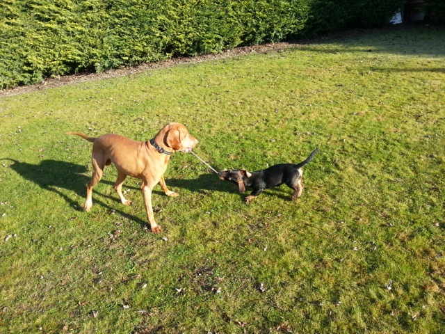 Obwohl Dotty jetzt noch keine zwei Wochen bei uns ist, hat sie ihren Platz in unserer Familien schon fest eingenommen. Wir haben viel Freude mit ihr und wir denken auch sie mit uns. Die Feiertage waren sehr aufregend, da sie bereits die ganze "Großfamilie" kennenlernen durfte.
