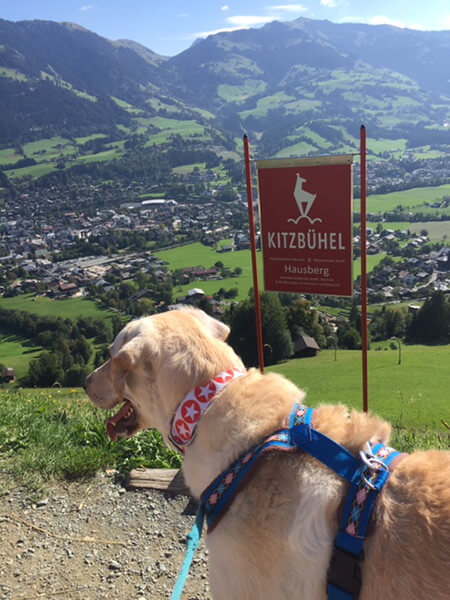 Erik hat fast gar keine Angst mehr vor fremden Leuten. In Kitzbühel war eine seiner Lieblingsbeschäftigung mit mir durch die Stadt zu gehen. Dort war er überall willkommen, durfte mit in die Geschäfte und hat Leckerlis bekommen. Das hat ihm sehr viel Selbstvertrauen gegeben. Meine Freundin war mit ihrer Hündin zur selben Zeit in Kitzbühel und die beiden haben sich bestens verstanden und viel miteinander gespielt.
