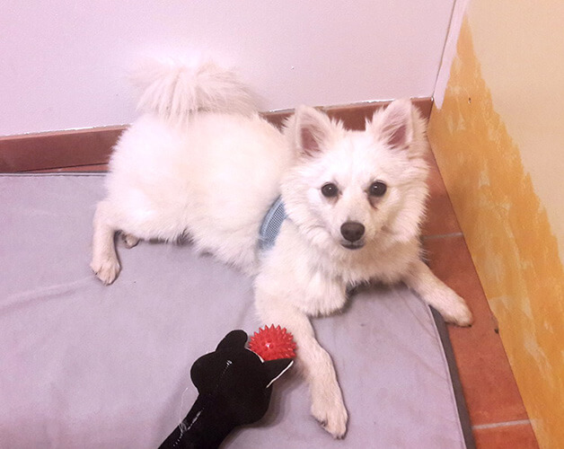 Seit einem Monat lebt nun Eskimo bei uns. Er hat sich gut eingelebt, auch hat er schnell heraus gefunden, wie bequem unser Bett zum schlafen ist :-)