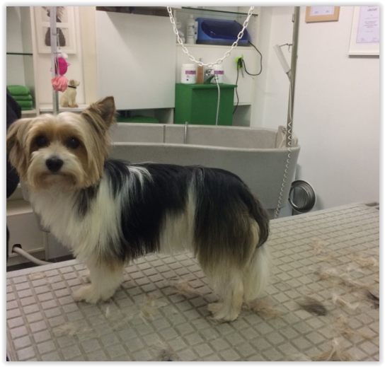 auch wenn ich mich nun seltener melde genießen wir das Leben mit unserer Prinzessin nach wie vor in vollen Zügen. Wir sind sooooooo froh, dass Fanny so ein ruhiges Wesen ist, sie bellt nach wie vor nur äußerst selten, und ist immer noch extrem lernwillig und wissbegierig. Hier die Bilder von ihrem ersten Friseurbesuch.