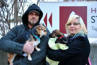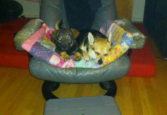 Nachdem wir vor 1,5 Jahren unsere kleine Chihuahua Mischlingsdame Moose von ACA adoptierten, beschlossen wir vor einigen Monaten uns einen zweiten Hund zuzulegen. Da wir mit euch so tolle Erfahrungen gemacht haben, war für uns klar, dass wir wieder bei euch fündig werden würden. Nun begann die Suche. Täglich schaute ich auf die Homepage, denn irgendwann, wusste ich, würde ich den richtigen Hund finden. Am 26.01.2013 war es dann endlich soweit und wir adoptierten wir unseren zweiten Hund, den 3,5 Monate alten Dackel - Chihuahua Mischling Fido. Als wir heimkamen, waren die Katzen nicht so begeistert.... bis heute nicht. Die Lage zwischen den Katzen und Fido wird aber von Tag zu Tag besser, vor allem werden Trace und Zombie von Moose beschützt, wenn Fido sie wieder mal anbellt oder durch die Wohnung jagt. Jedenfalls wird seit der ersten Nacht immer durchgeschlafen und der Kleine fühlte sich von der ersten Sekunde an pudelwohl bei uns. Die Tage werden verbracht mit fressen, schlafen und toben und dann beginnt alles wieder von vorne. Moose bekam auch Muttergefühle und jedes Mal vor dem Schlafen gehen wird Fido von ihr abgeschleckt und wenn er zu frech wird erzieht sie ihn. Täglich lernen wir mit ihm die Grundkommandos "Sitz" und "Komm" und er hat richtig viel Spaß dabei, vor allem wenn wir auch Leckerlis einsetzen.