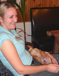 Also, der Kleine hat sich schon ganz toll eingewöhnt. Er ist komplett auf mich fixiert und läuft mir überall hinterher.