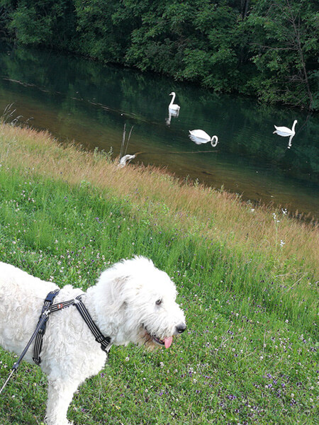 Er ist ein sensibler Hund, sehr feinfühlig aber trotz allem aufgedreht und sehr aufgeweckt. Er wird immer lustiger und fröhlicher.