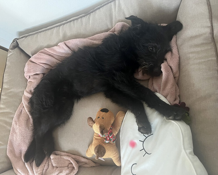 Sie hat sich überraschend schnell eingewöhnt, jeden Tag sieht man einen Fortschritt bei ihr - Angefangen bei Fridas' nun überwundenen Abneigungen gegenüber der Stiege bis hin zu der Bindung mit anderen Familienmitgliedern. Die Entwicklung ist wunderschön mitanzusehen und wir haben eine unglaubliche Freude mit Frida.