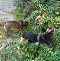 streunten friedlich nebeneinander her. Boobee immer ein bisschen vorne, sie wollte Chefin spielen :-)