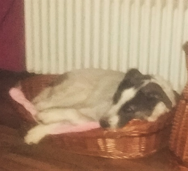Ich schicke Ihnen über Whats App ein paar Bilder, er hat gerade die Couch für sich entdeckt.