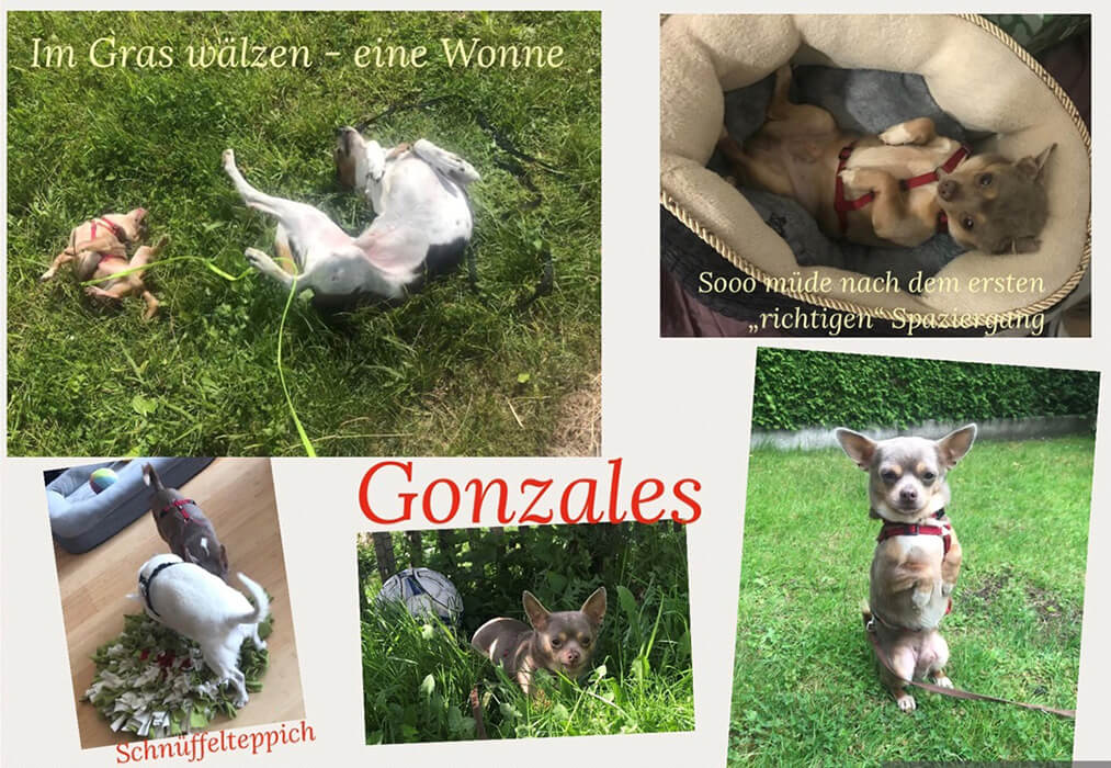 Wenn Gonzales wie ein Erdmännchen im Gras sitzt und treuherzig dreinschaut, bringt er jeden zum Lachen und die Herzen zum Schmelzen ❤️. Ich bin sehr glücklich, dass er mir anvertraut wurde und freue mich auf viele gemeinsame Jahre.
