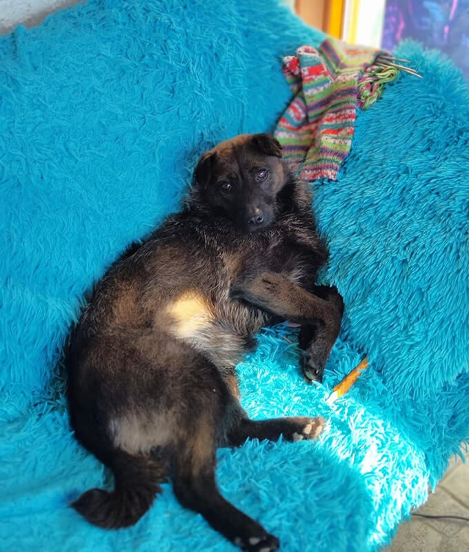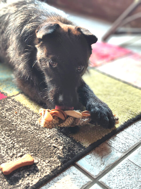 Hanni wird jeden Tag ein wenig mutiger und selbstsicherer. Sie galoppiert gerne in rasendem Tempo durch den Garten oder kaut ihre Kaustangen im Wintergarten. Das Autofahren haben wir gestern zum ersten Mal probiert, aber das war ihr noch sehr unheimlich. Das werden wir noch behutsam trainieren, schließlich wollen wir im Herbst ins Hundehotel nach Bayern fahren, worauf ich mich schon sehr freue :-)!