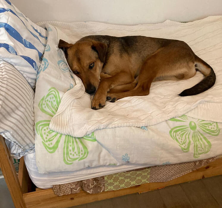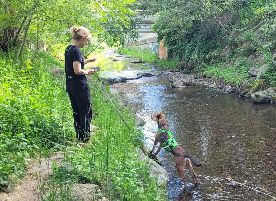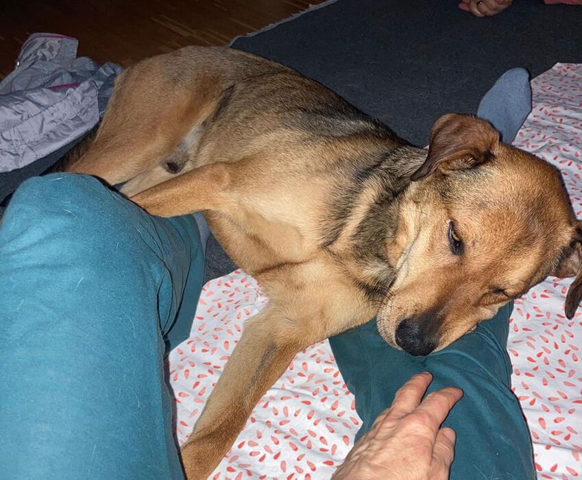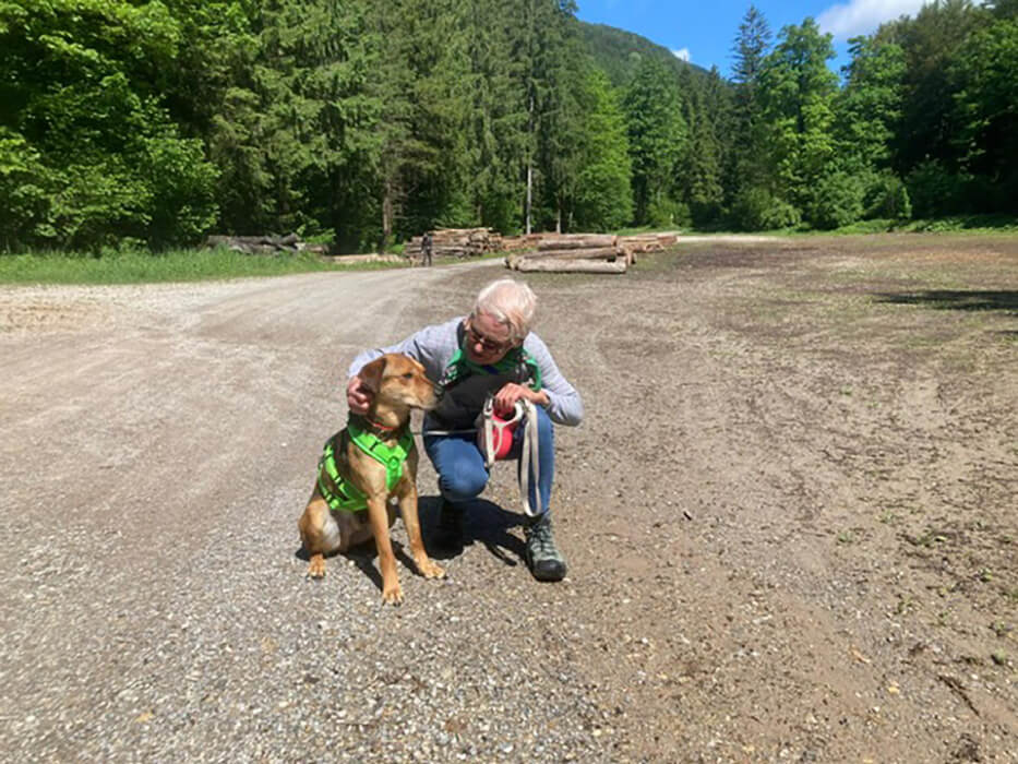 Er ist so ein lieber, sanfter und fröhlicher Hund und es ist herzwerwärmend, zuzusehen, wie er immer mehr aufblüht. Ganz sanft üben wir auch das alleine bleiben, mit Karin, damit auch das für ihn kein Stress mehr ist.