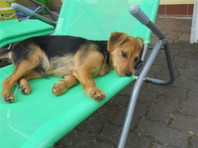 Hiermit senden wir Ihnen einige Fotos von unserem lieben Jacky (vorher Bruno). Jacky fühlt sich bei uns sehr Wohl, er ist ein lieber föhlicher Kerl und er ist schon sauber. Spielen und Spaziergänge (wo wir andere Hunde zum spielen begegnen mag er sehr). Wir waren auch schon beim Tierarzt impfen-er war sehr tapfer.