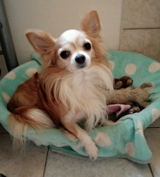 Mit Daisy und Teddy (Chi's) gibt es keine Probleme, er spielt auch mit ihnen und die Katze schaut er gar nicht an. Die Katze steht neben ihm, aber er ignoriert sie nur. Doch den Mico (Bullmastiff), den knurrt er an, aber der Mico ist eh so gutmütig, der macht ihm nichts. Der denkt sich nur ..was will der Zwerg von mir😉😄😄. Nur bei gewissen Geräuschen schreckt er noch manchmal zusammen, aber er läuft nicht weg. Denn als er zu uns kam war es sehr geräuschempfindlich, aber es wird immer besser.