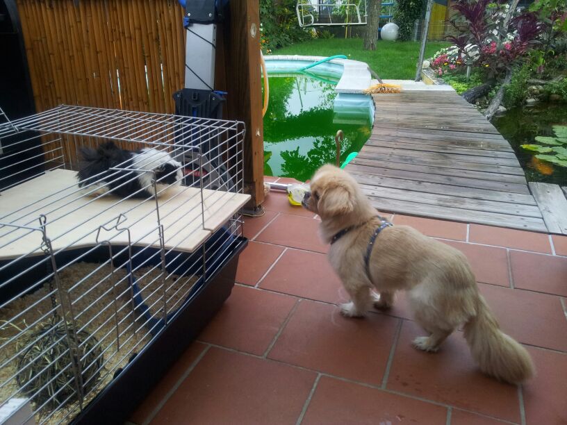 Blacky, das Meerschweinchen ist meine Freundin, die habe ich ganz fest abgeleckt bevor sie in den Käfig kam, nur leider ist das Bild nichts geworden. Sie kommt jetzt mit ihrer Schwester Schecki ins Haus damit sie noch soooooooo kalte Pfoterl bekommen. Na, denen geht es gut! Die beiden waren im Sommer, wie es heiß war, bei uns in der Wohnung und ich hatte einen gratis Fernseher. ggg
