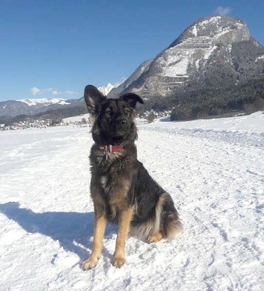 Sie fühlt sich bei uns in Tirol sehr wohl und geniest unsere Ausflüge in vollen Zügen.