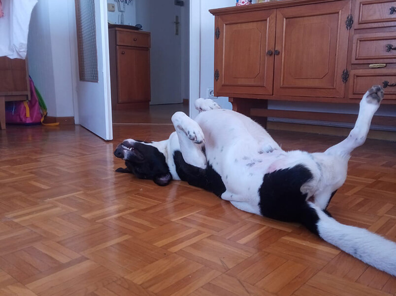 Wie ihr sehen könnt, bin ich aber auch gerne einmal zuhause, wo ich super entspannen kann und dann wird auch ordentlich gekuschelt.