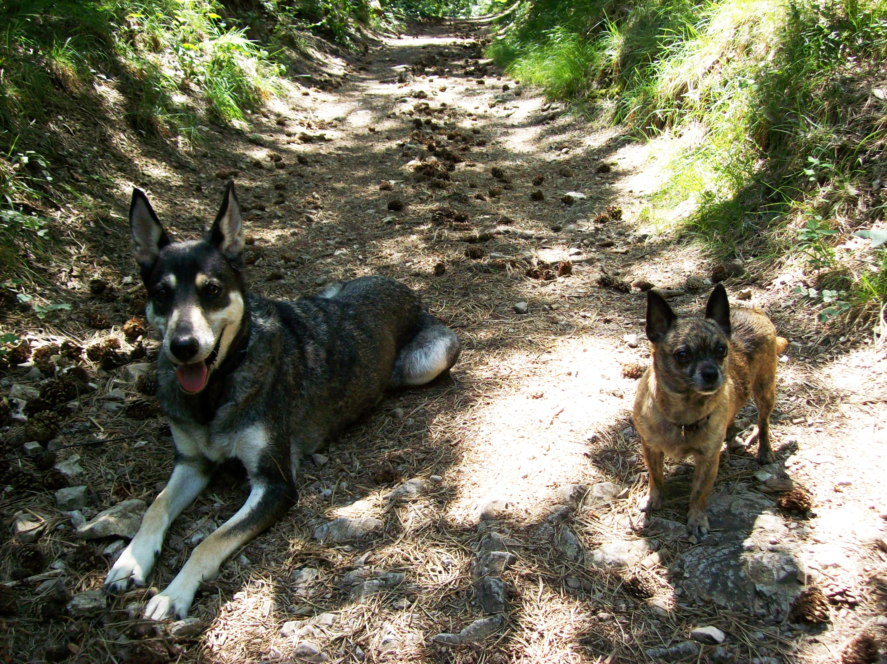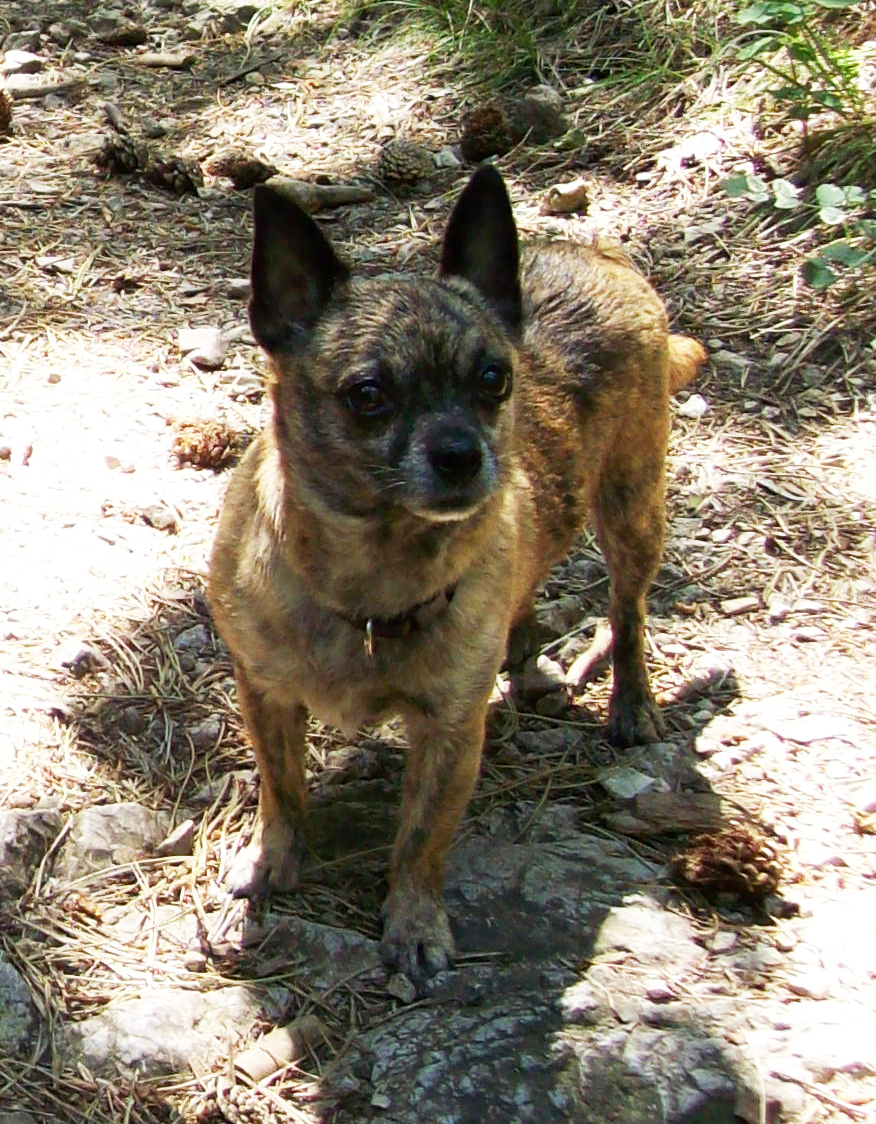 Lena und sie verstehen sich prima, beide sind freundliche, aber nicht klebrige Hunde - sie teilen sich das Körbchen, die Kleine liegt oft auf der Großen drauf, aber ich kann sie auch problemlos trennen und mal nur mit einer was unternehmen, ohne dass die andre die Krise kriegt, sehr angenehm. Das Problem mit ihrer Angstaggression gegenüber Männern haben wir nicht gelöst, aber im Griff, indem ich sie zB beim Wandern sofort zu mir rufe, wenn ein Mann am Weg auftaucht, und ihr Leckerlis gebe, bis der vorbei ist. Somit läuft sie bereits zu mir, wenn einer kommt, statt ihm aggressiv entgegen. Sie hat mit konsequenter Diät und viiieeeel Bewegung schon fast 1 1/2 kg abgenommen - ich schätze, 1/4 kg muss noch weg, dann ist sie idealgewichtig. Fit ist sie schon, wir können 3 Stunden am Stück in normalem Tempo wandern und es ist wunderschön zu sehen, wie viel Spaß ihr einfach alles macht. Sie kann sich hemmungslos genießend 5 min am Stück in der Wiese wutzeln. Ich arbeite ja auf einem Hof mit über 40 Tieren und auch da hat sie sich völlig problemlos eingefügt - Pferde, Katzen, Schafe, Hühner, alles kein Problem.