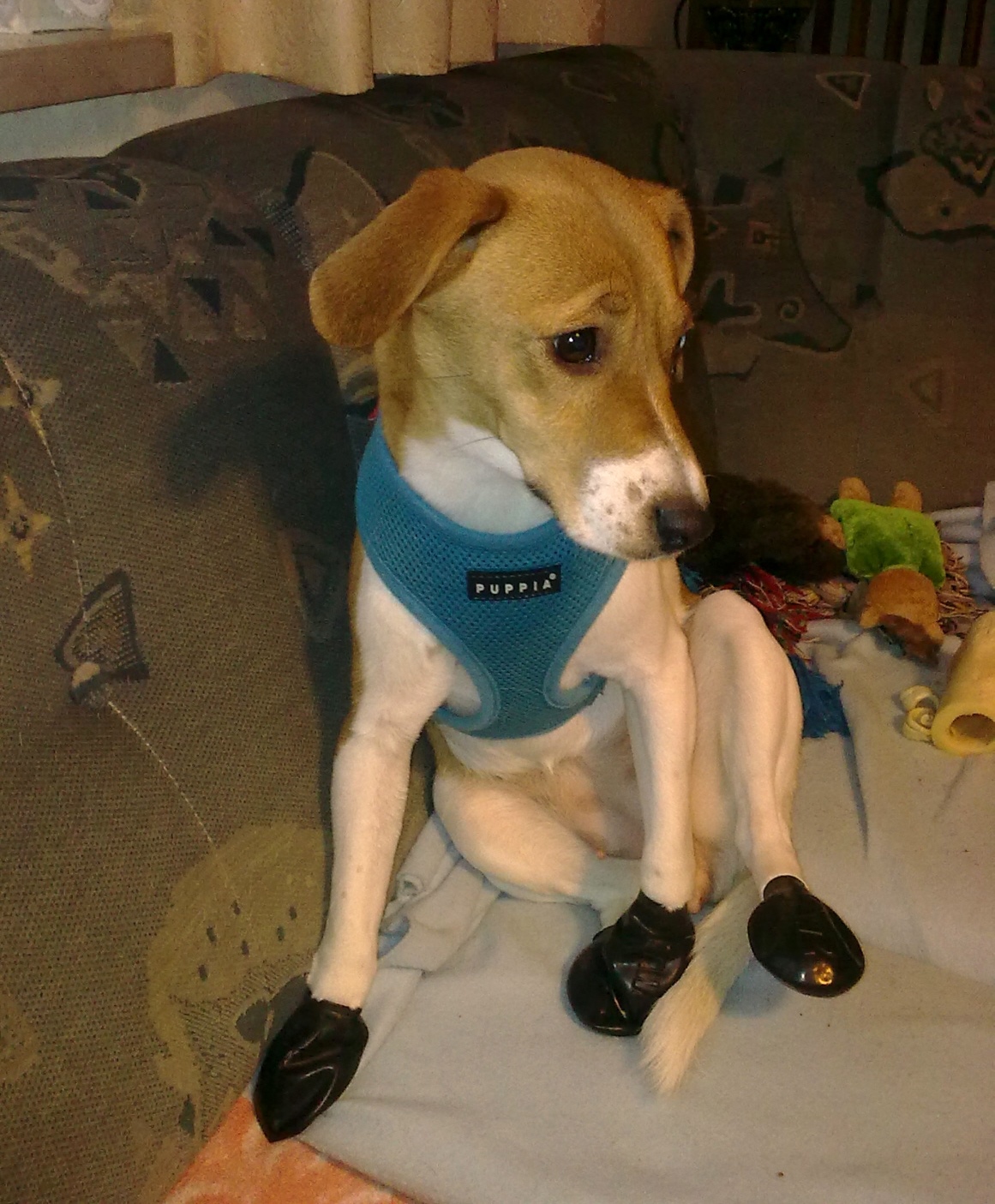 Nun ist unsere kleine Kathy schon bald ein halbes Jahr bei uns. Mit ihr haben wir einen Glückgriff gemacht und sie zaubert jedem ein Lächeln auf die Lippen. Natürlich ist sie ein kleiner Lauser geblieben, aber so soll es auch sein, denn sie ist noch jung und übermütig, aber Kathy kann auch sehr brav und folgsam sein. Ich kann sie überallhin mitnehmen und das freut Kathy ganz besonders, denn am liebsten ist sie immer in meiner Nähe. Der erste Schnee hat sie sehr begeistert. Da ich sie auch nach Wien mitgenommen habe, musste Kathy „Schuhe“ anziehen. Ich war überrascht, sie hat ihr Pfötchen brav gehalten und auch im Auto keinen Schuh angeknabbert.