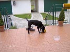 Uns geht es allen sehr gut. Bei Kiara und uns war es Liebe auf den ersten Blick und sogar Kater Oggi merkt langsam, daß Kiara kein Monster ist, nur spielen will er noch nicht mit ihr, dafür ist auch unser Sohn Max zuständig, die beiden tollen stundenlang im Garten. Wir haben zwar jetzt eine kleine Kleptomanin im Haus, denn es verschwinden dauernd Sachen wie Schuhe, Decken, Polster oder was ihr sonst noch in die Quere kommt. Sie schnappt einfach alles und versteckt es im Garten - sogar einen Besen. Ist aber nicht schlimm, wir wissen ja, wo wir suchen müssen. Unsere Kiara gehört vom ersten Tag an in unsere Familie und wir können uns gar nicht mehr vorstellen, was wir ohne sie getan haben.