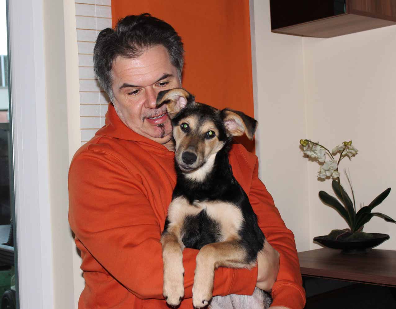 Spät, aber doch komme ich nun endlich dazu Ihnen mal zu schreiben.... und gleich anfangs die Info... ich heiße jetzt nicht mehr Belly, sondern KIRA (und höre auch schon ganz brav auf meinen Namen). Seit mich meine Adoptiveltern in Wien abgeholt haben, ist ja soooo viel passiert. Ich fühle mich bei meiner neuen Familie total wohl und entwickle mich prächtig, wie Sie auch an den Fotos sehen können.... :-). Ich bin schon richtig groß geworden (Schulterhöhe ca. 50cm), habe ein tolles Gebiss (nur mehr 2 Milchzähne) und wiege schon 12 Kilo. Nachdem ich mich richtig eingewöhnt und meine nähere Umgebung kennen gelernt habe, machen wir jetzt immer wieder ganz tolle Ausflüge. Ich weiß gar nicht, wo ich anfangen soll. Gleich in unmittelbarer Nähe meines Zuhauses ist ein toller Park mit Hügeln, Bach, Biotop, großer Wiese (wo ich auch frei laufen darf) und - das ist eigentlich das Beste - ein kleines Naturschutzgebiet, also unberührte Landschaft, wo ich mich richtig austollen kann und alles nach Herzenslust erkunden darf! Wir fahren auch immer wieder auf Freilaufwiesen, wo ich mich mit meinen Hundefreunden (und davon habe ich wirklich schon viele) zum Spielen treffe. In meiner Nachbarschaft wohnen auch sehr viel Hunde und einen davon mag ich besonders gern.... er heißt Buddy - ein Bordercollie - und er ist nur 2 Tage älter wie ich... er wohnt gleich im Nachbarhaus und somit habe ich fast jeden Tag Gelegenheit mit ihm zu spielen. Von meiner "Beobachtungsstation" am Balkon aus habe ich den totalen Überblick und merke sofort, wenn was Interessantes passiert - mir entgeht nichts... mein Herrchen sagt dann immer, dass ich so unglaublich neugierig bin.... Mittlerweile habe ich die ganze Familie und sehr viele Freunde meiner Eltern kennen gelernt - und was soll ich sagen - die sind alle total lieb zu mir und verwöhnen mich mit Leckerlis & Co. Nur mein Frauchen bremst das immer wieder. Sie sagt, dass zu viel davon für Hunde nicht gut ist. Meine Eltern und auch die Kinder meiner Eltern sind in Bezug auf Futter sehr streng. Ich bekomme nichts vom Tisch und wenn die Familie isst, muss ich brav sein und darf nicht betteln- aber meistens duftest es so verführerisch, dass ich doch noch hoffe, dass etwas "herunter fällt". Aber eigentlich macht mir auch nichts aus, weil ich immer total leckeres Essen bekomme. Mein Frauchen kocht auch für mich....! Und weil ich das schon gelernt habe mich zu benehmen und auch wirklich brav bin, durfte ich auch schon mit ins Kaffehaus, ins Restaurant, zu Freunden, auf div. Weihnachtsmärkte, und... und.... und.... tja, ich hab schon gemerkt, dass es sich auszahlt artig zu sein und lernen tue ich ja sowieso gerne.