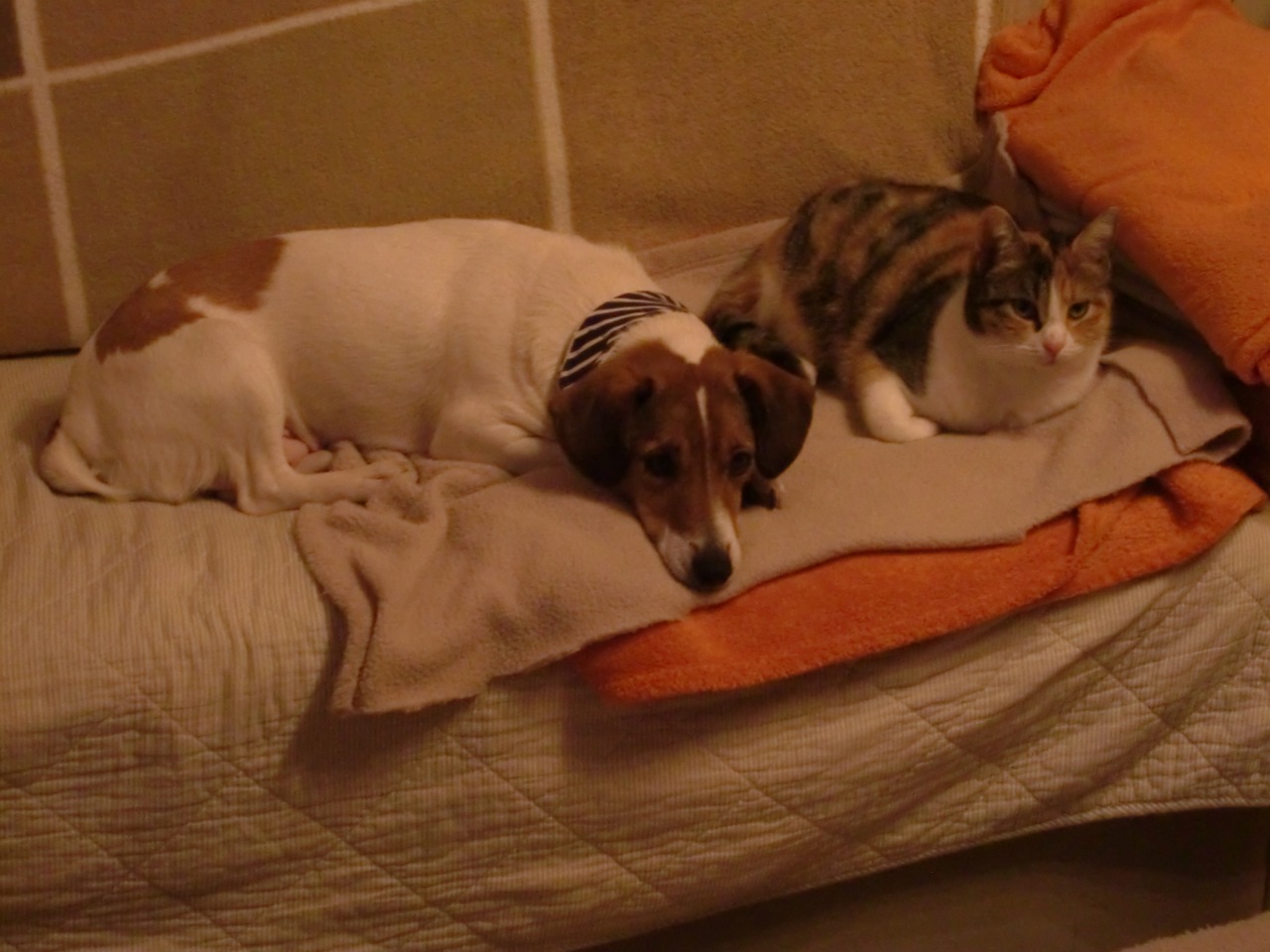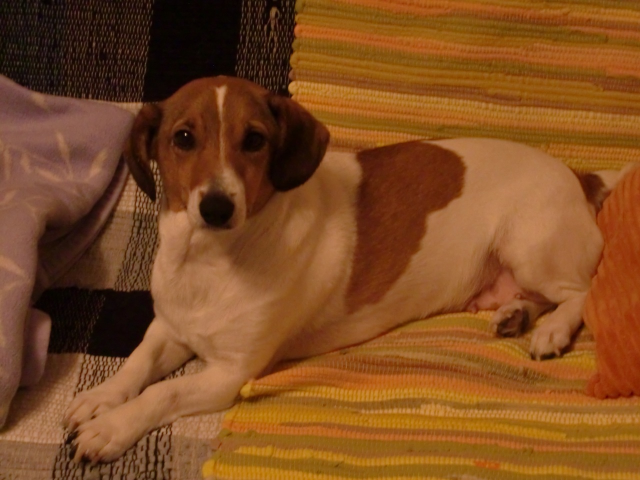 Kitty geht es sehr gut und hat sich schon prima eingelebt. Mit den Katzen versteht sie sich gut. Außerdem ist sie ein gemütlicher Kuschelhund. Wenn das Wetter nicht so schön ist, mag sie nicht so gerne draußen sein. Sie geht dann im Garten Gassi und läuft dann schnell wieder ins Haus und kuschelt sich aufs Sofa oder ihren Platz. Eine besonders liebe Eigenschaft von ihr ist, dass sie sich oft hinsetzt und wartet was kommt. Sie hat einen so lieben Blick und ist ein richtiger Traumhund. Fressen tut sie sehr gerne und für Leckerlis tut sie fast alles. Sie geht brav an der Leine und dackelt gemütlich dahin. Neulich hätte ich einen anderen Hund zum Spielen da gehabt. Sie hat sich aber nur hingesetzt und ihm beim Laufen zugeschaut. Wir haben eine riesen Freunde mit ihr und sie ist eine echte Bereicherung in unserem Leben.