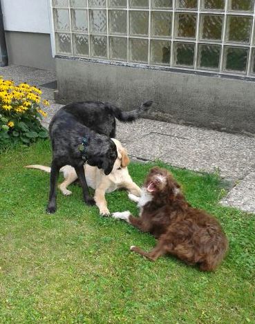 Ob es eine Spielstunde mit den anderen Familienhunden ist oder ein entspannendes Schläfchen. Er scheint es zu geniessen.