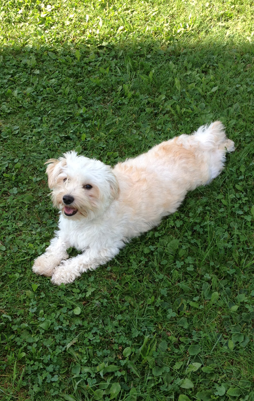 Er läuft aufgeweckt in unserem Garten herum , spielt brav und hat auch schon wieder richtiges Leuchten in den Augen :-) Er schläft brav in seinem Körbchen und ab und zu kommt er mich ins Bett besuchen ;-)