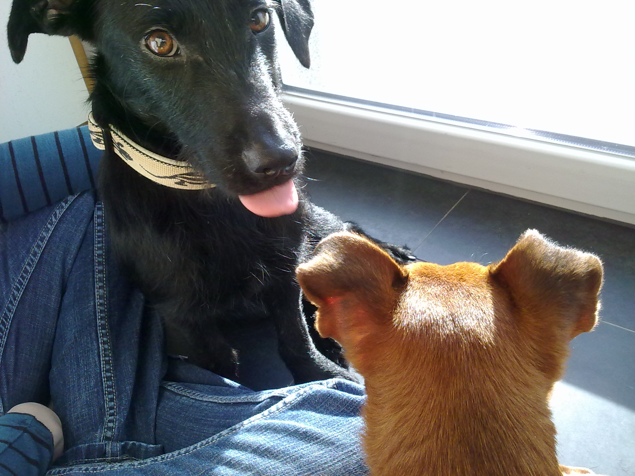 ein kurzer Bericht über Lacey, der jetzt 2 Monate bei mir ist: Der kleine Mann hat sich gut eingewöhnt und fühlt sich pudelwohl! Das Alleinebleiben klappt nun, auch wenn er es nicht besonders mag. Jetzt weiß er, dass ich ja immer wiederkomme ;) Fremden gegenüber, besonders Kindern und Männern, ist er noch misstrauisch .. aber er gewöhnt sich jetzt langsam an sie. Bei Hundebegegnungen verbellt er die anderen Hunde gerne - dieses Problem lösen wir aber nun gemeinsam in der Hundeschule. Er macht schnell Fortschritte und ist ein kluger Junghund! Grundkommantos wie Sitz, Hier, Bleib usw. hat er in Windeseile erlernt. Lacey hat nun alle Hemmungen verloren und wirft sich nun regelrecht neben mir auf die Couch, wenn er seine Streicheleinheiten will (was praktisch immer der Fall ist) :) Er ist wirlich ein lieber, anhänglicher kleiner Kerl! Ich kann in ohne Probleme ableinen, er bleibt auf dem Feld immer in meiner Nähe. Lacey ist noch gewachsen (er ist jetzt fast 40 cm groß) und hat nun schönes, längeres Fell - schwarz mit weißen Haaren durchzogen. Wir haben die Vermutung, dass bei Lacey möglicherweise auch ein Schauzer mitgemischt hat, da er auch nun längere Barthaare hat ;)